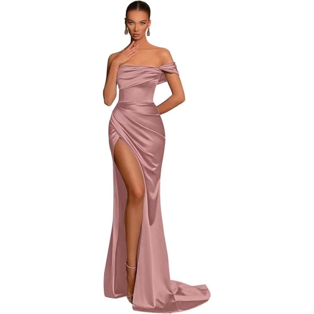Be the first to review “Silk Satin Bridesmaid Dresses One Shoulder Mermaid Prom Dress Ruched Formal Party Dress with Slit(Dusty Rose)”