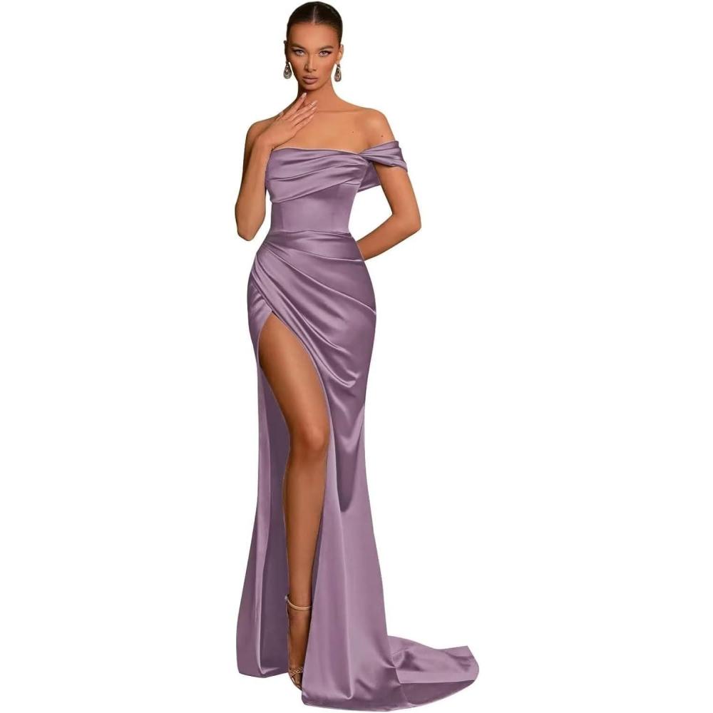 Save up to 40% on Silk Satin Bridesmaid Dresses One Shoulder Mermaid Prom Dress Ruched Formal Party Dress with Slit(Wisteria) styles during our end-of-season sale.