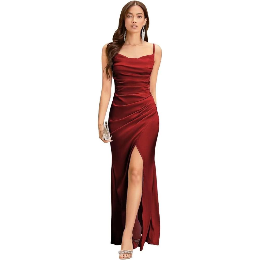 Be the first to review “Spaghetti Straps Mermaid Prom Dress Long Silk Satin Bridesmaid Dresses for Wedding Cowl Neck Formal Gowns with Slit(Wine Red)”