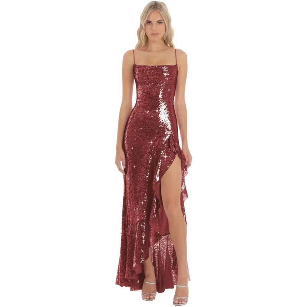 Don’t miss out on our limited-time offer: buy Spaghetti Straps Sequin Prom Dresses for Women Tight Mermaid Formal Dress Ruffle Sparkly Evening Party Gowns(Burgundy), get {accessory} 50% off!