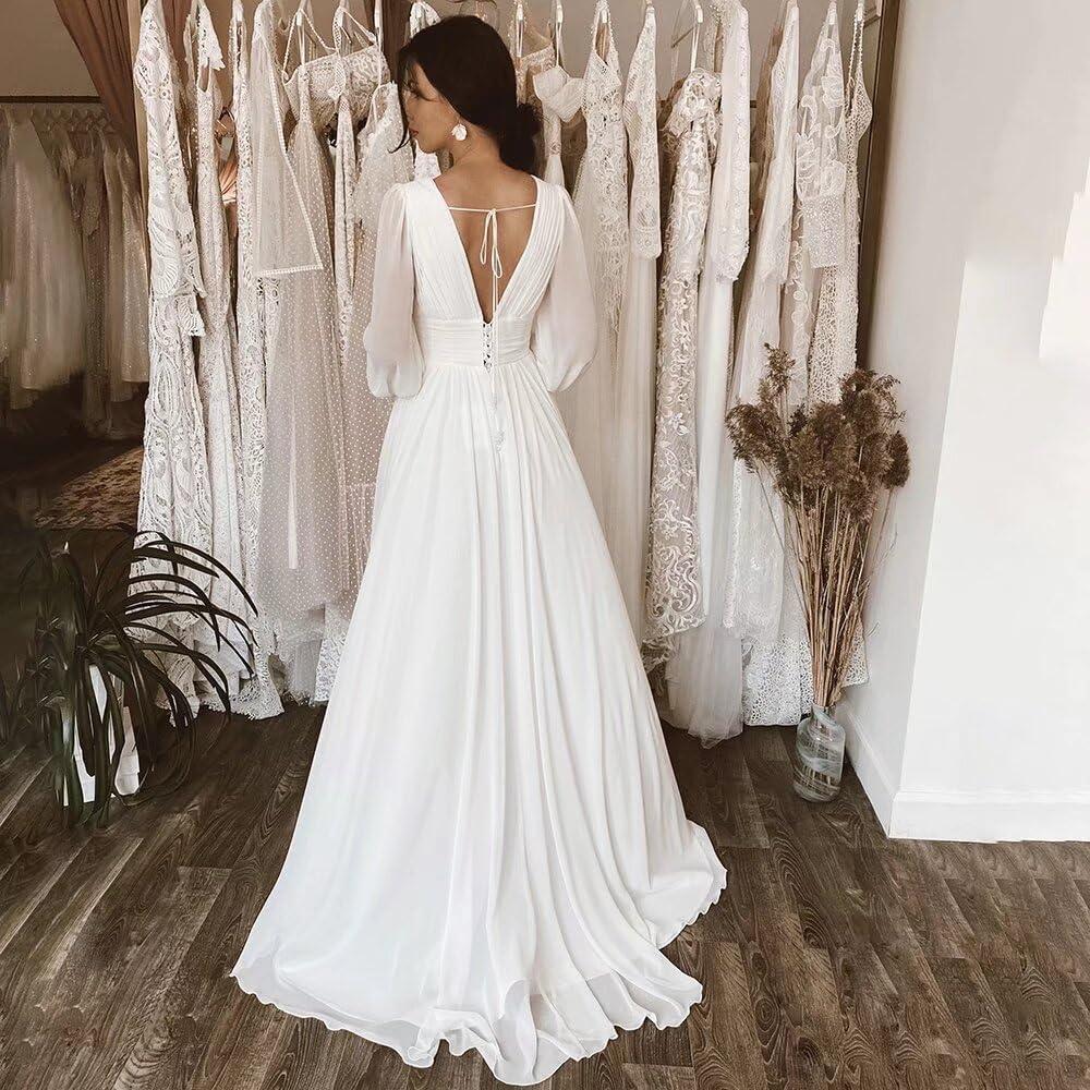Split Chiffon V Neck Long Sleeve Prom Dresses for Women A-Line Pleated Formal Maxi Dress .