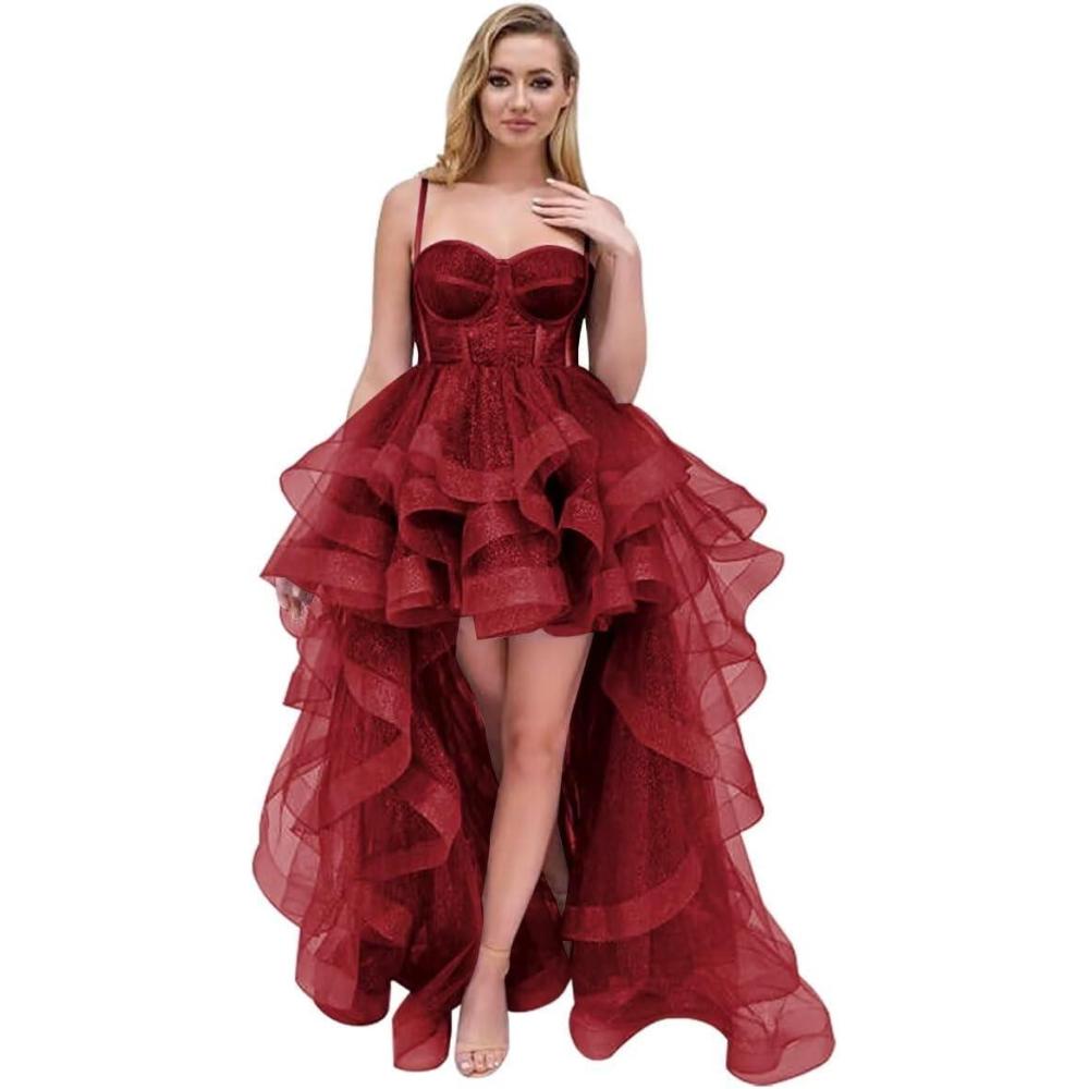 Be the first to review “Tulle Prom Dress Spaghetti Straps Ball Gowns High Low Homecoming Dress Layered Ruffles Princess Quinceanera Dresses(Wine Red)”