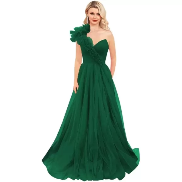 Tulle Prom Dresses Long One Shoulder Flower Formal Evening Dress A-line Ball Gowns for Women(Olive Green)