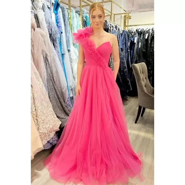 Tulle Prom Dresses Long One Shoulder Flower Formal Evening Dress A-line Ball Gowns for Women(Dusty Rose)