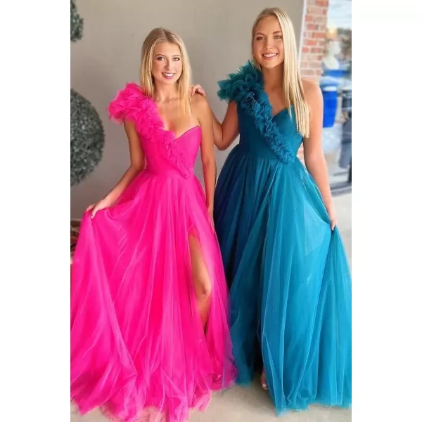 Tulle Prom Dresses Long One Shoulder Flower Formal Evening Dress A-line Ball Gowns for Women(Peacock)