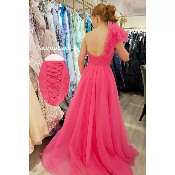 Tulle Prom Dresses Long One Shoulder Flower Formal Evening Dress A-line Ball Gowns for Women(Coral)