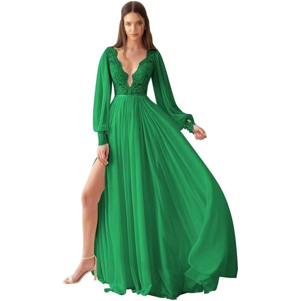 Don’t miss out on our limited-time offer: get a free {accessory} with your purchase of V Neck Long Sleeve Bridesmaid Dresses Lace Beach Boho Wedding Dress Chiffon Formal Gowns for Women with Slit(Green).