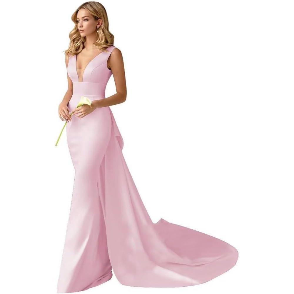 Be the first to review “V Neck Satin Prom Dresses Long Mermaid Simple Wedding Dress with Cape for Women(Pink)”