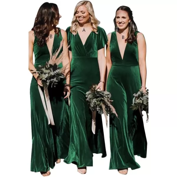 Ruffle Sleeve Velvet Bridesmaid Dresses Long for Wedding V Neck Wrap Formal Evening Gowns(Dark Green-a)