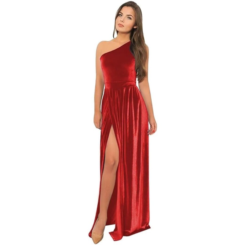 Be the first to review “Velvet Bridesmaid Dresses Long One Shoulder Prom Dresses Maxi Party Dress for Women with Slit(Red)”