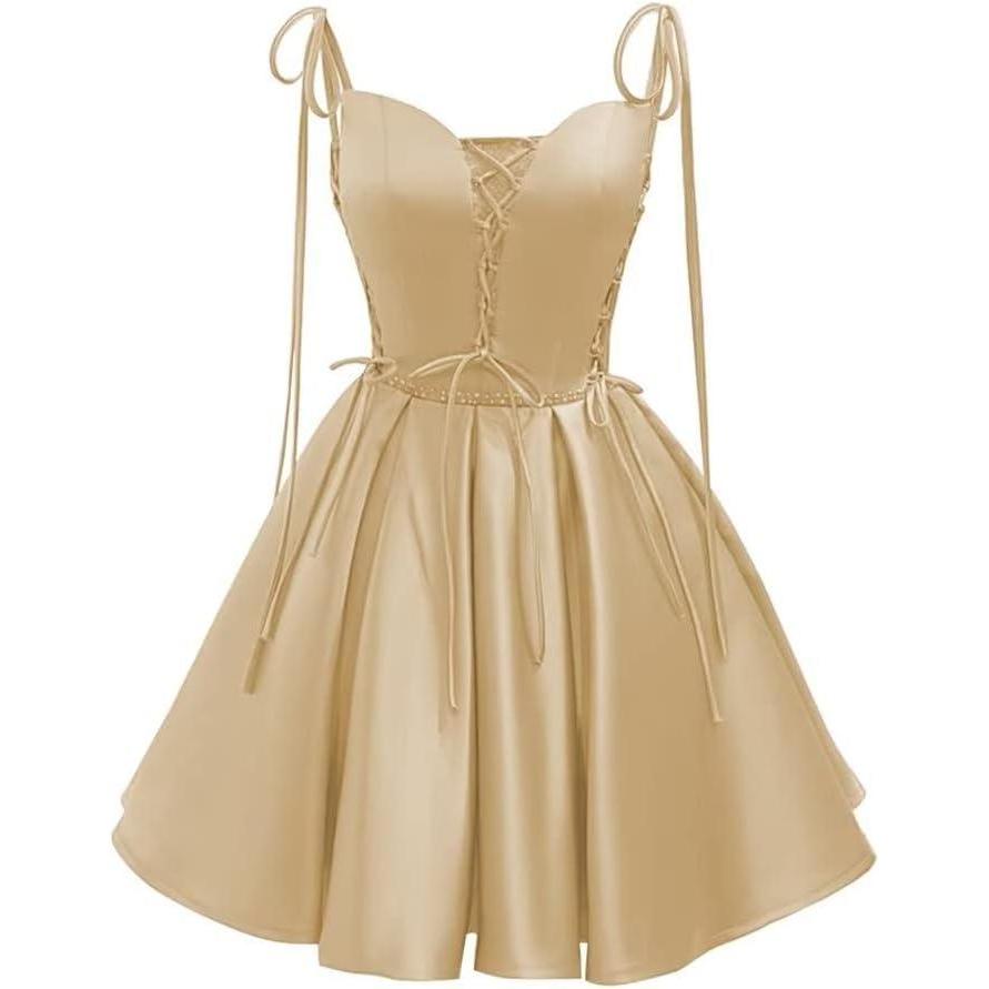Vintage Gothic Dresses Satin Homecoming Dress Short Prom Dress for Teens Spaghetti Straps Cocktail Gowns(Champagne)