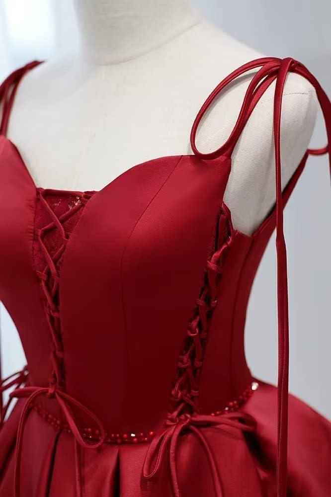 Vintage Gothic Dresses Satin Homecoming Dress Short Prom Dress for Teens Spaghetti Straps Cocktail Gowns(Red)