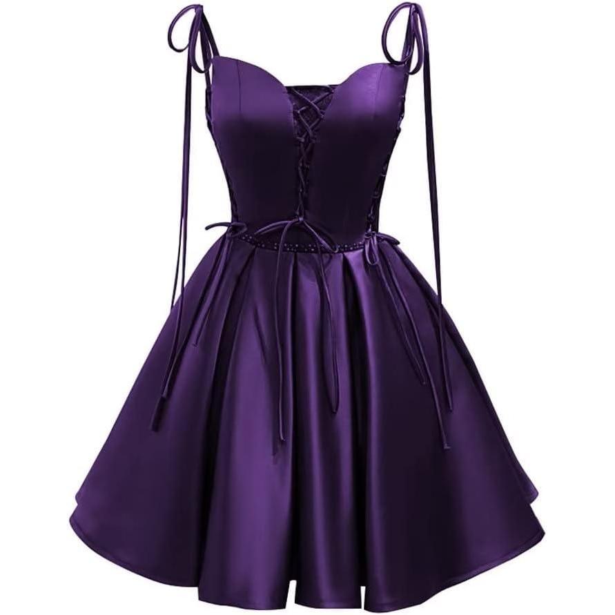 Vintage Gothic Dresses Satin Homecoming Dress Short Prom Dress for Teens Spaghetti Straps Cocktail Gowns(Purple)