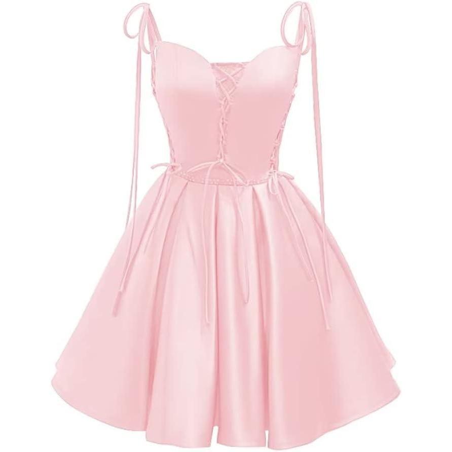 Vintage Gothic Dresses Satin Homecoming Dress Short Prom Dress for Teens Spaghetti Straps Cocktail Gowns(Pink)