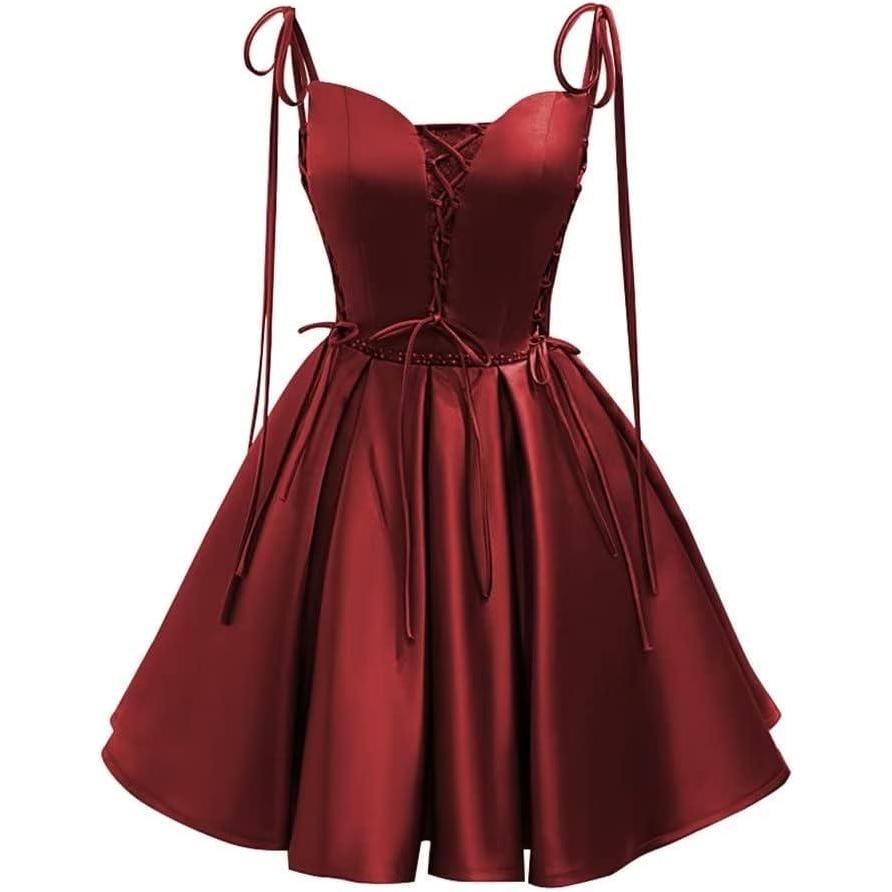Vintage Gothic Dresses Satin Homecoming Dress Short Prom Dress for Teens Spaghetti Straps Cocktail Gowns(Red)