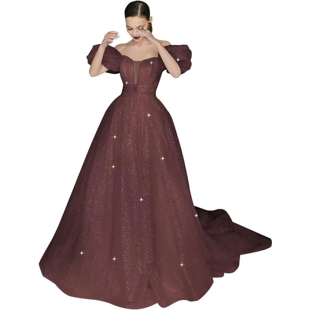 Be the first to review “Women’s Puffy Sleeve Prom Dresses Long Ball Gown Glitter Tulle Wedding Dresses for Bride V Neck A Line Princess Gown(Burgundy)”